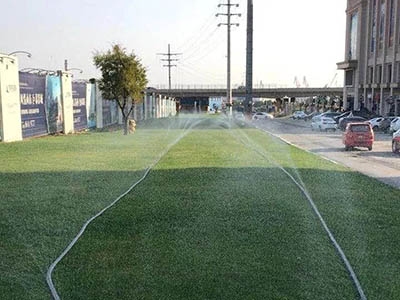 播種之后均勻澆水,澆水是保證正常發(fā)芽的關(guān)鍵。澆水的重點(diǎn)在于保持坪床濕潤(rùn)而非澆透土壤。微噴帶霧化噴水,噴水深度浸透表層土3-5cm。不能有大水沖刷,會(huì)造成局部草坪出苗不勻。